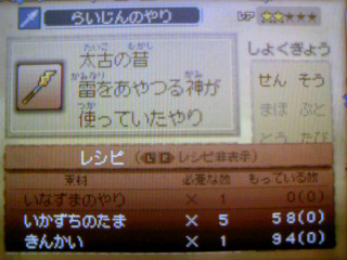 ヤリとかレシピかなり空いてて。。
