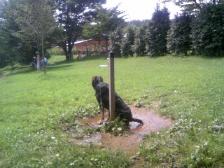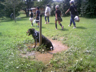 水浴びしてる犬。